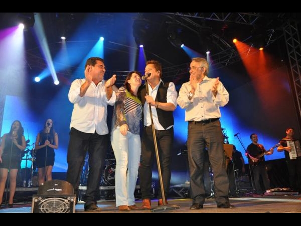 O cantor chamou ao palco o prefeito Rogério Graxa e a primeira dama Nádia, para juntos cantarem os parabéns ao município.