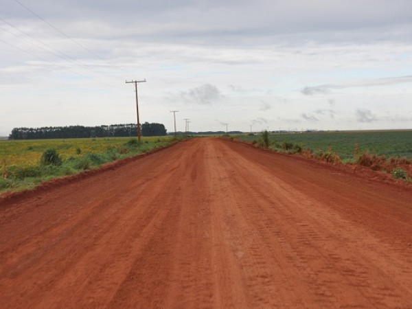 Um trecho com mais de 38 quilômetros recebeu raspagem, revestimento primário com cascalho em trechos mais críticos e patrolamento. O serviço visa melhorar as condições de tráfego e garantir condições favoráveis para o escoamento de grãos e transporte escolar, por exemplo.